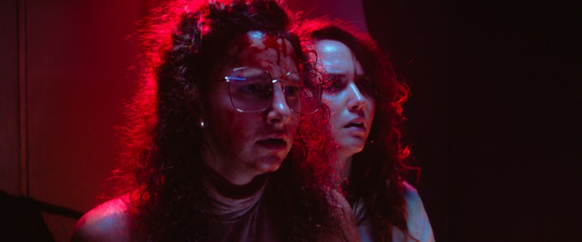 Angie (Caito Aase) is a stripper who works in a neon-soaked porn palace called Revealers. Sally (Shaina Schrooten) is a born again Christian who harasses Angie every chance she can get, waving religious protest signs and marching outside the shop with the hope of “saving” everyone inside. When demonic forces from the underworld suddenly attack, the two women become trapped together inside a cramped peep show booth. They are from different worlds, but are suddenly forced to work together if they hope to escape with their lives.