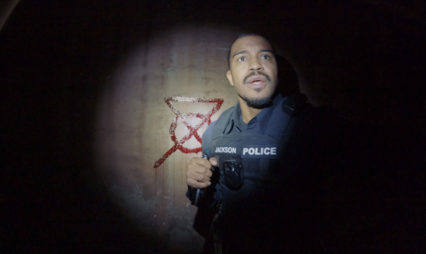 The cover up is only the beginning of the nightmare. Because this is a found footage horror film, almost everything we see comes from police body cameras, security cameras, and other surveillance angles (all of that adds to the realism of the situation). As the officers scramble to keep their story straight, strange and increasingly disturbing things start showing up in the footage. It slowly dawns on them that whatever happened during that call may have awakened a supernatural force that isn’t about to let them get away with what they’ve done.